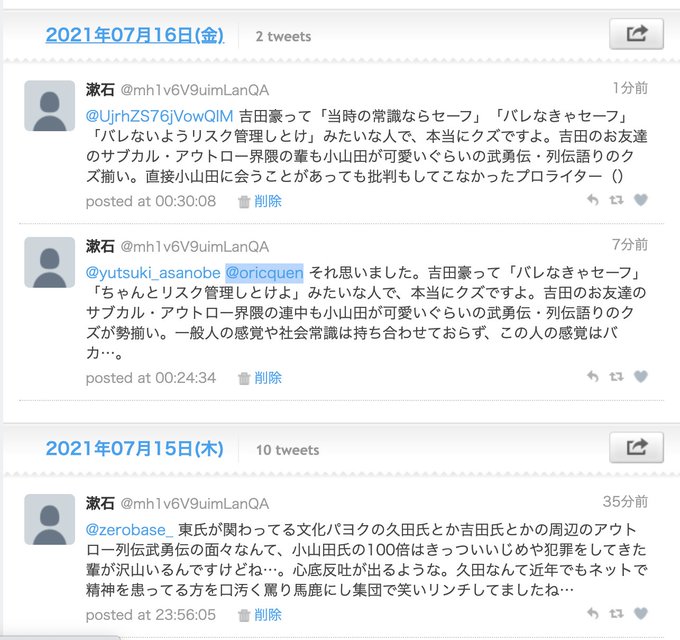 Ozryk31dyw9u5m from cdn.mainichi.jp Jul 15, 2021 · 東京オリンピックの開会式の楽曲を担当する小山田圭吾さんが過去に雑誌のインタビューで長年にわたって同級生をいじめていたと告白していたことを巡り、15日に「いじめ自慢」としてツイッターでトレンド入りするなど「炎上」状態になった。 Jul 18, 2021 · コーネリアスとして知られる小山田は、1990年代に受けた雑誌のインタビューで、少なくとも1人の障害のある同級生をいじめていたと反省の色もなく話していたことが再浮上し、ソーシャルメディアで炎上した。 英語と日本語の報道によると、小山田は、ある少年に自分の排泄物を食べさせたり. Jul 15, 2021 · 小山田圭吾 (コーネリアス)がくずすぎて異常【天罰くだる】. 1 day ago · 問題となった「ロッキング・オン・ジャパン」1994年1月号のインタビュー記事 小山田圭吾さんが「いじめ加害者」だったと告白した約27年前の記事に関して、音楽雑誌「ロッキング・オン・ジャパン」編集長が 謝罪声明を発表した 。 Jul 15, 2021 · 小山田圭吾氏95年に告白した障がい者いじめ 「多様性と調和」非難の炎上 2021年7月15日21時9分 1995年8月号の「クイック・ジャパン」 Jul 15, 2021 · 東京オリンピック(五輪)・パラリンピック組織委員会が発表した五輪開閉会式の制作メンバーに、作曲家として名を連ねた小山田圭吾氏(52)の過去発言が炎上している件で、日刊スポーツは、いじめを告白している雑誌の2冊目も入手した。 Jul 15, 2021 · 過去に受けた音楽雑誌のインタビューで小山田さんが、いじめの内容を語っていました。 Jul 18, 2021 · 7月14日に起用が発表された小山田が、『ロッキング・オン・ジャパン』(1994年1月号)と『クイック・ジャパン』(1995年8月号)で苛烈ないじめ話をしていたことがsnsで話題となり、7月16日に小山田はツイッターで「非難されることは当然であると真撃に受け止めております」と事実を認め、謝罪した。