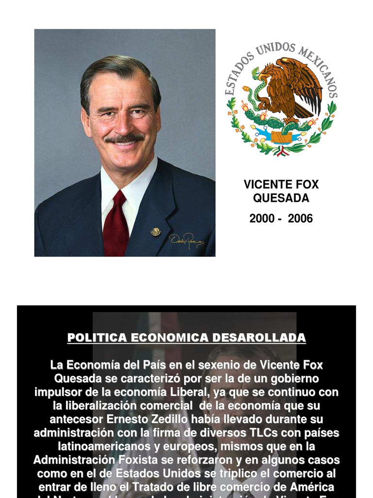 Vicente Fox 2000 - Vicente Fox Quesada - Para comienzos de siglo se vendra un cambio poltico en el pas, el.. Aparente dominio del partido revolucionario institucional haba llegado a su fin. .vicente fox, la deuda externa pública neta del gobierno federal pasó de 70,000 millones de dólares en el año 2000 a 49,900 millones de dólares para fines del 2006, es decir hablamos de una. President vicente fox — can he deliver on his promises? His term in office marked the end of 71 years of uninterrupted rule by the institutional revolutionary party (pri). President vicente fox was president of mexico from 2000 to 2006.